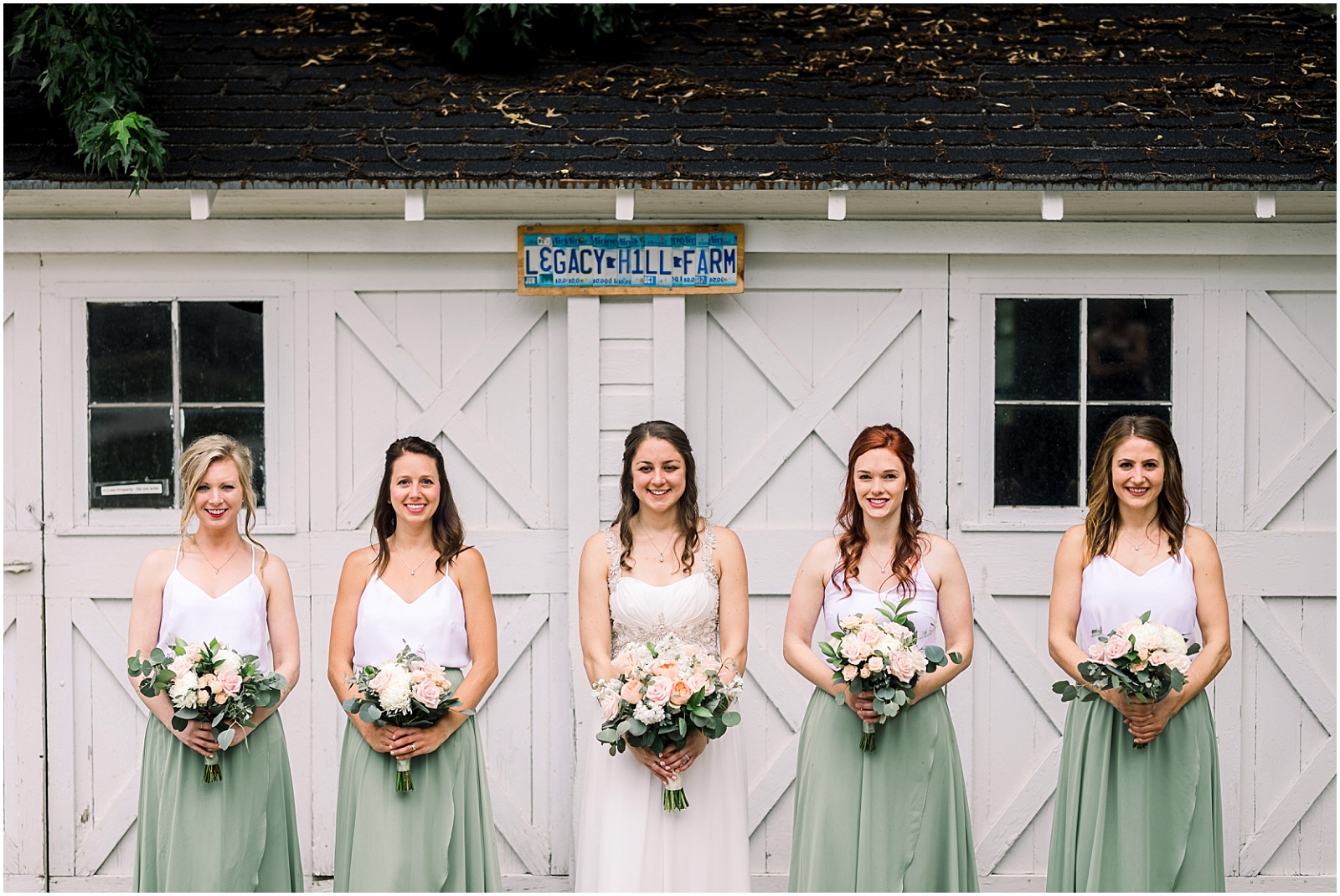 Before portraits began, rain threatened to turn the day somber. But as Tia ran over to the guy’s cottage to check on how they were, she was greeted by Alex. Alex jumped up from his chair with all the energy in the world to give her a hug that just about knocked her off her feet. He had the hugest smile on his face and when she asked how he was feeling, he exclaimed, “Great!” He continued to go on about how excited he was. When Tia ran back to Sam’s getting ready room she passed on the message and a huge smile spread across Sam’s face as the bridesmaids cooed about how cute that was. Legacy Hill Farm was in for a bunch of excitement!